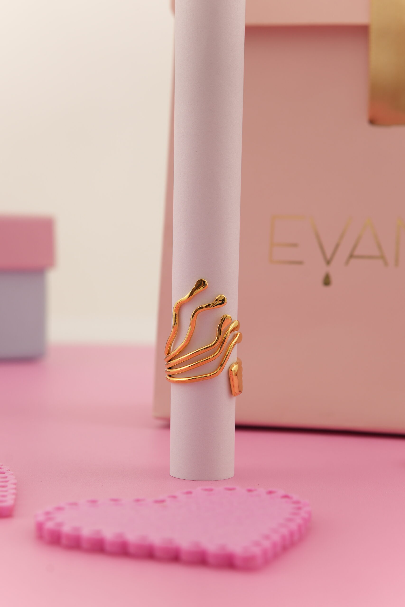 Anillo de joyería llamativo con acabado dorado, decorado con detalles ornamentados de estilo místico. El diseño elegante y vistoso aporta un aire de lujo clásico, ideal para ocasiones especiales o looks sofisticados.