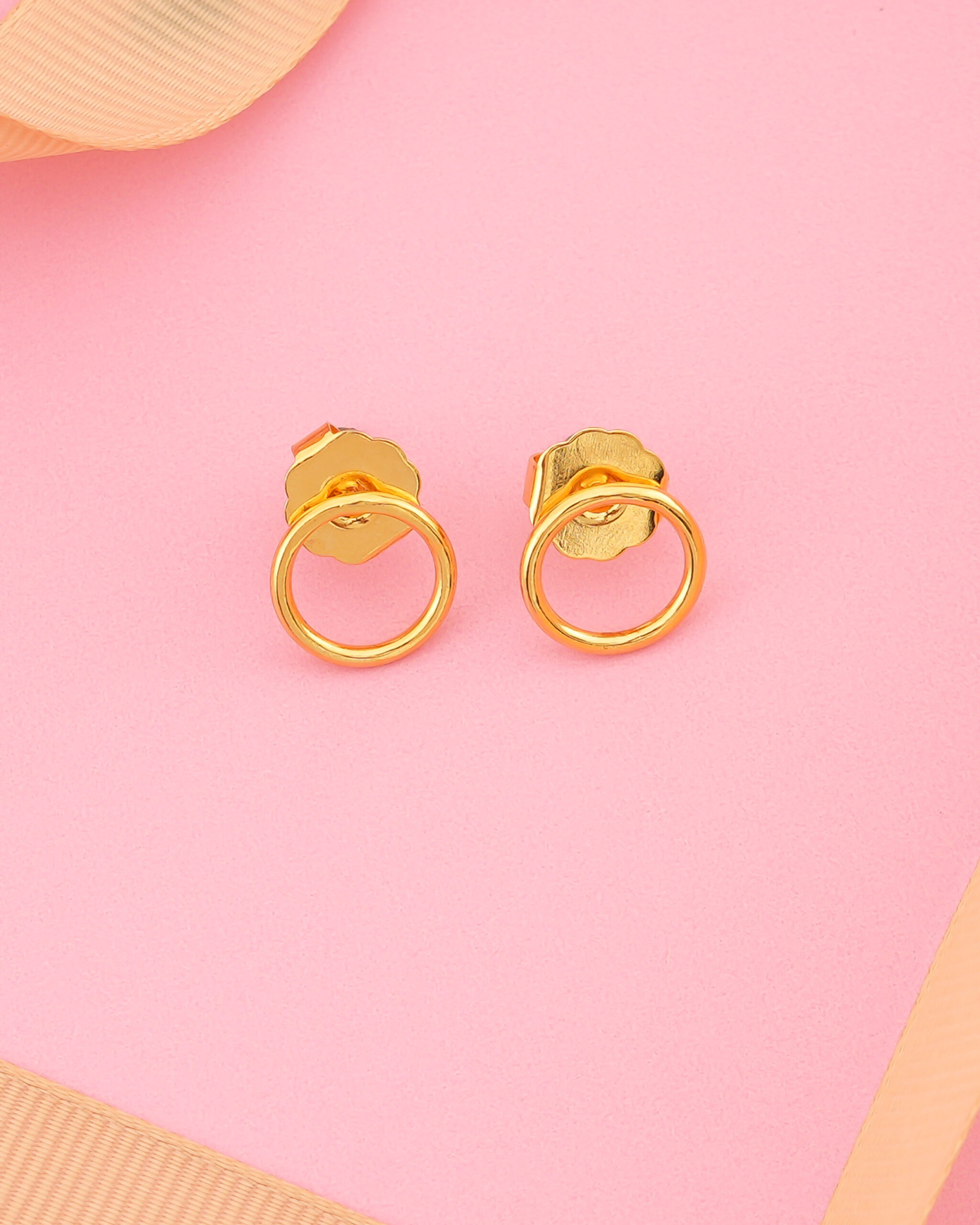 Arete de joyería estilo minimalista en forma de aro delgado, elaborado en Bronce con baño en Oro. El diseño simétrico y sencillo en tono dorado resalta la elegancia discreta, ideal para uso diario o eventos formales con un toque moderno y refinado.