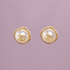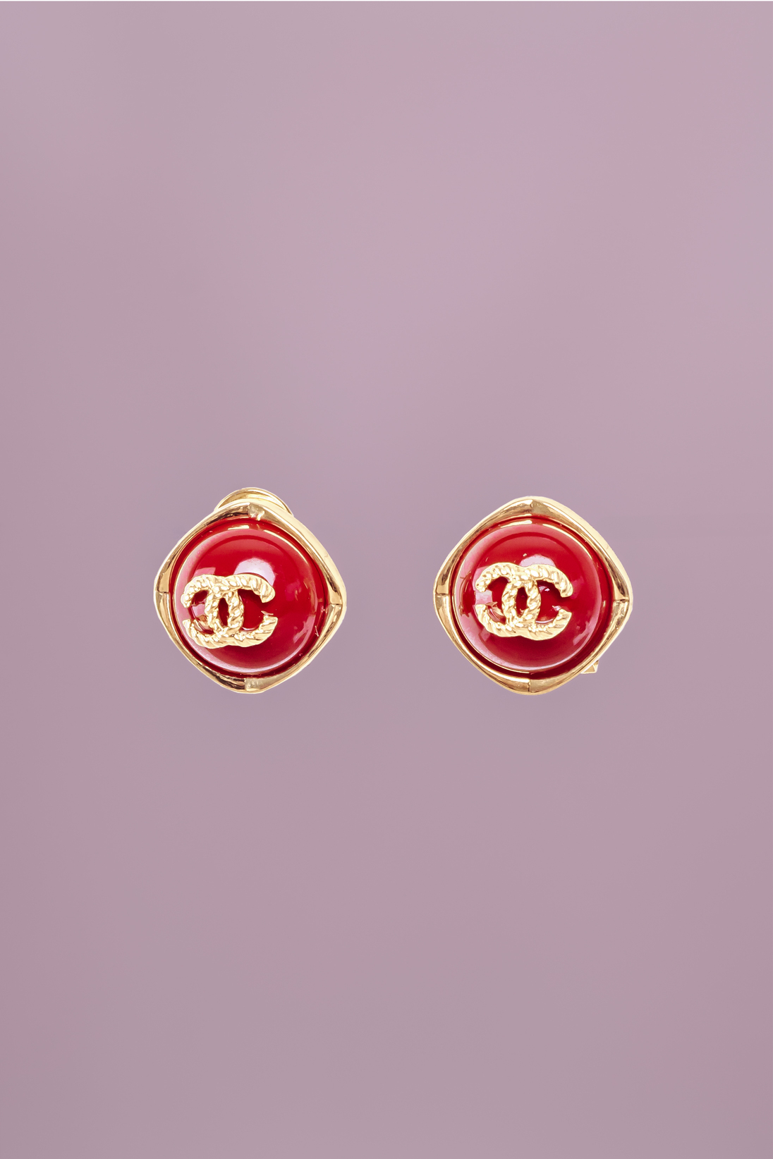 Sofisticados aretes en tono dorado con diseño icónico sobre fondo de color brillante. Un accesorio atemporal que evoca elegancia clásica y estilo refinado, ideal para realzar tus looks más distinguidos