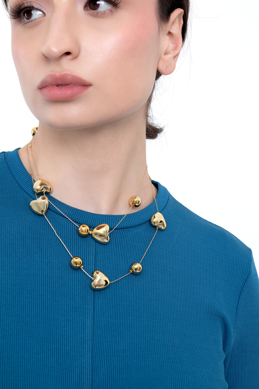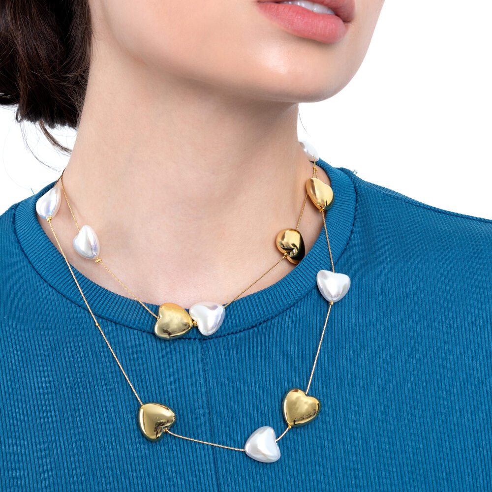 Collar elegante de doble vuelta con dijes en forma de corazones irregulares, Diseñado con hilo fino y flexible, ofrece un look moderno y delicado. Ideal para complementar atuendos formales o casuales con un toque romántico.